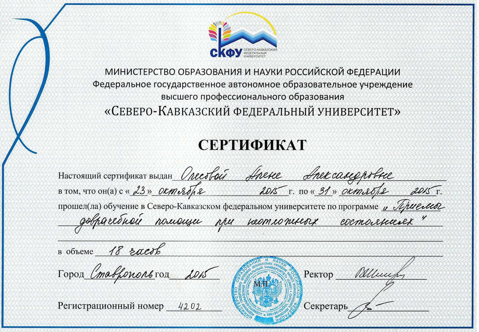 ФГАОУ ВПО «Северо-Кавказский федеральный университет». Ставрополь, 2015 г.