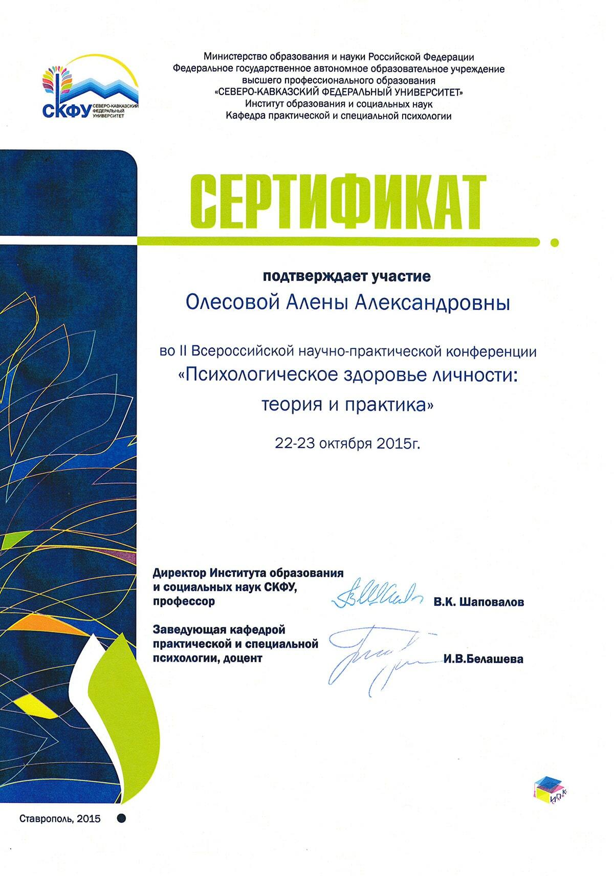 Научно-образовательный центр психотерапии «Поддержка». Ставрополь, 2015 г.