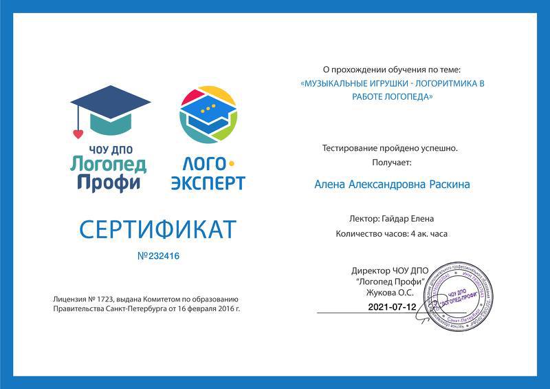ЧОУ ДПО «Логопед Профи». Санкт-Петербург, 2021 г.