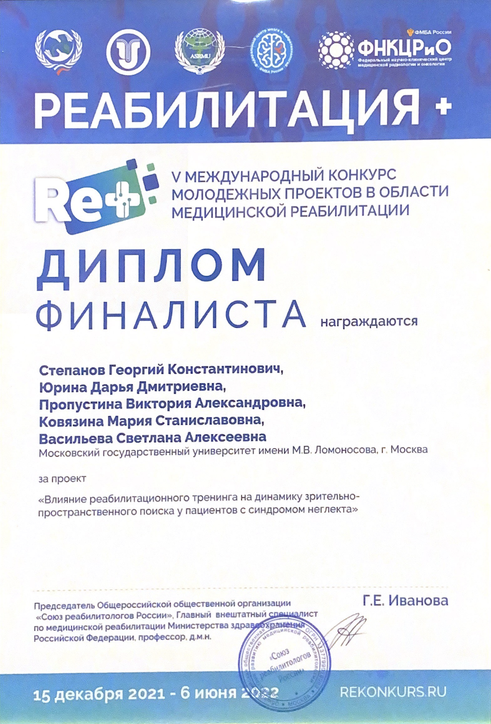 Реабилитация +: материалы V Международного конкурса молодежных проектов в области медицинской реабилитации, 15 декабря 2021 года – 6 июня 2022 года