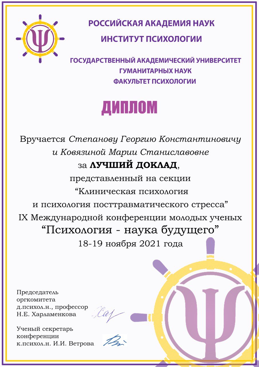 Психология – наука будущего: материалы IX Международной конференции молодых ученых «Психология – наука будущего», 18-19 ноября 2021 года