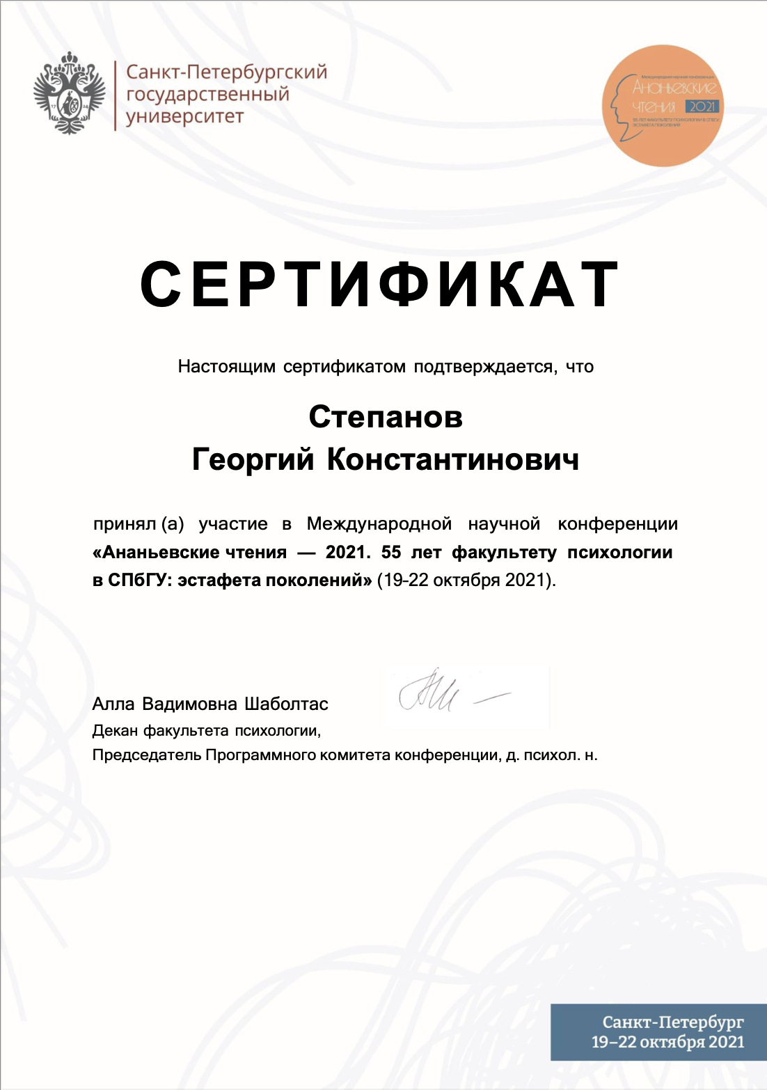 Ананьевские чтения - 2021: материалы международной научной конференции, 19–22 октября 2021 года
